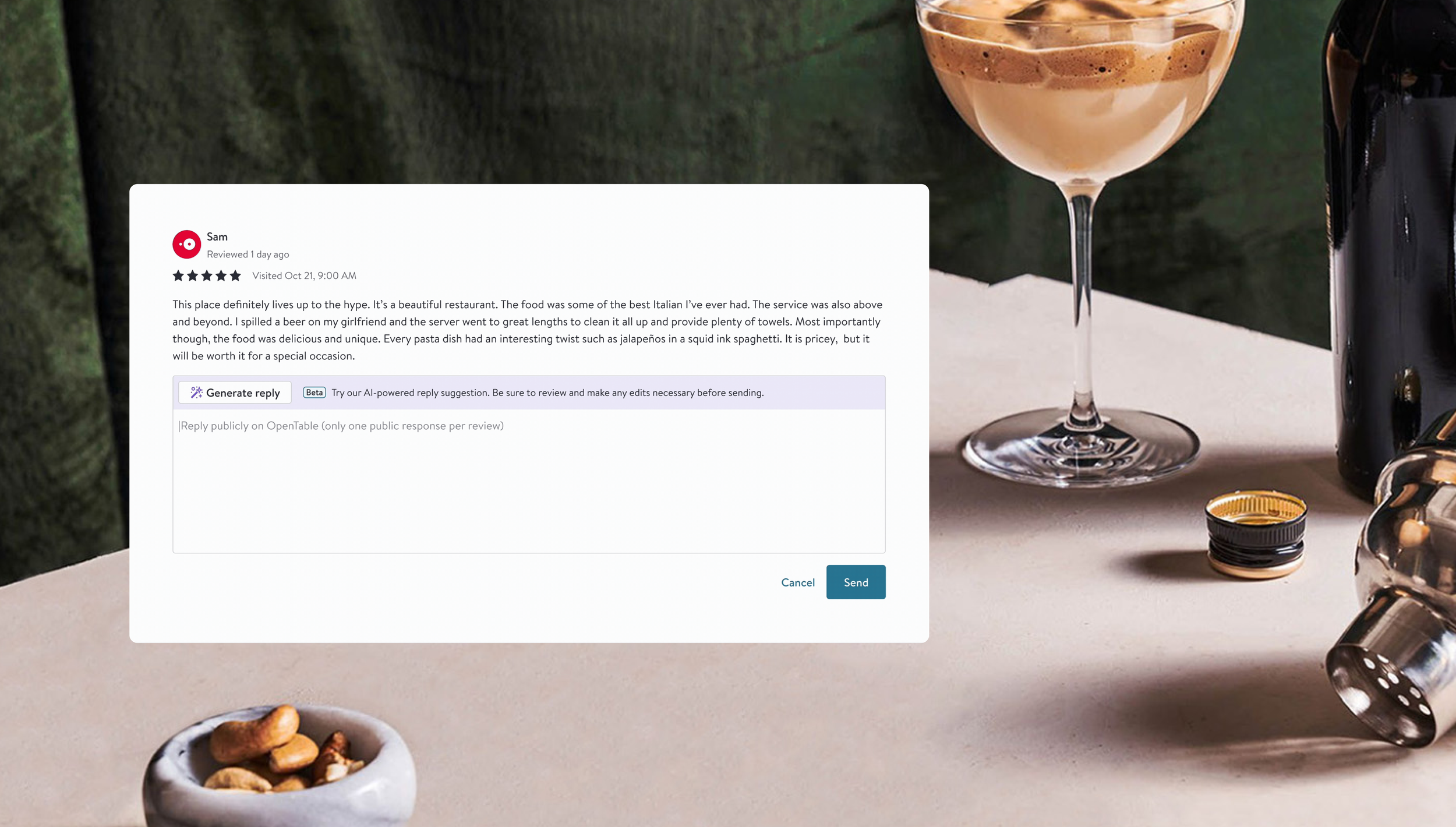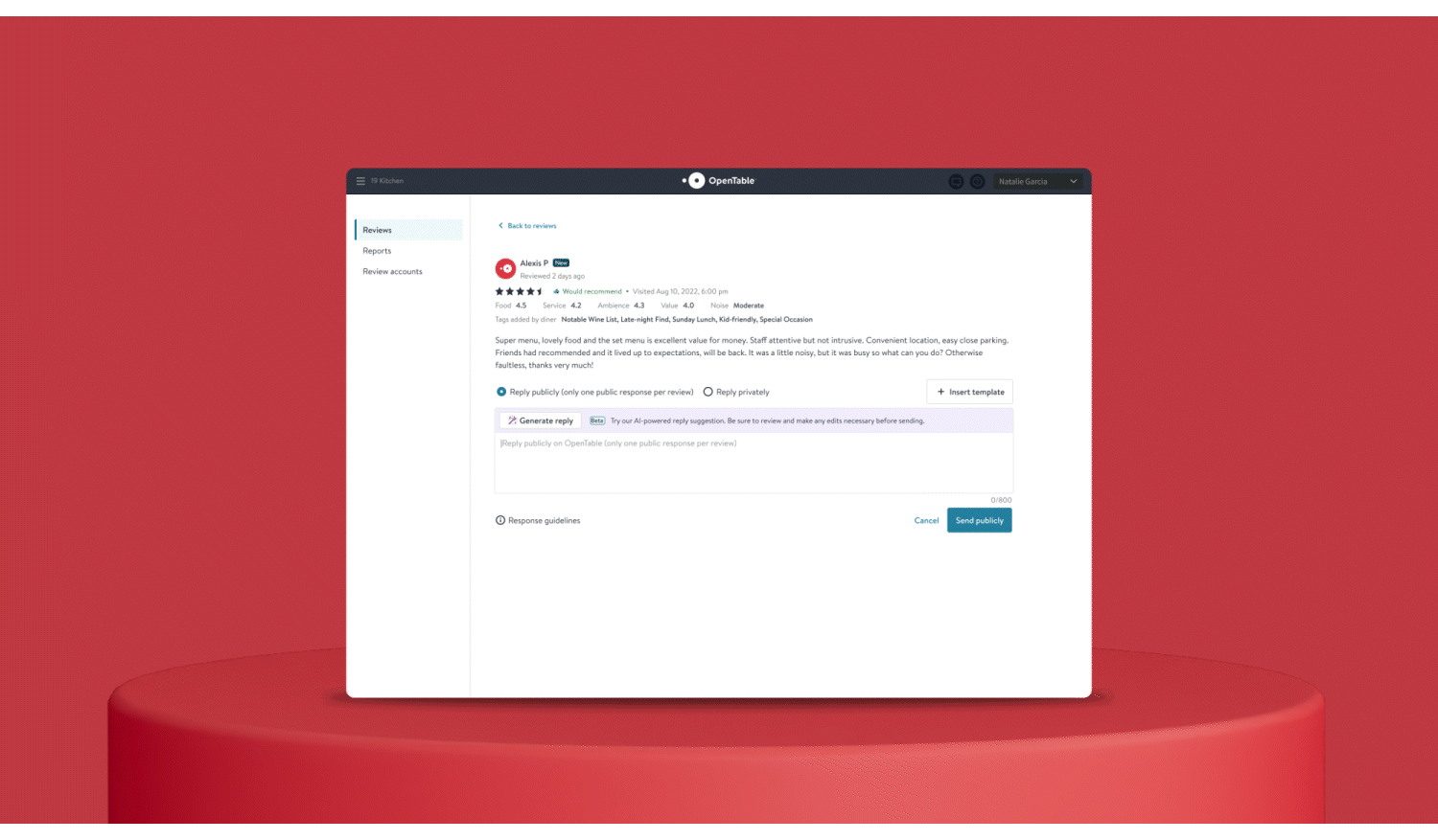 OpenTable . AI Assisted Review Responses